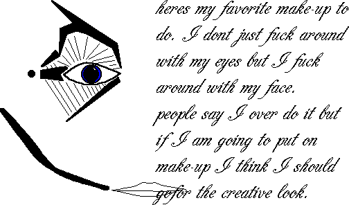 The lovely Lady Hydra had this to say: Your site has been a great help for me with designing my eyes for halloween. So, I've decided to contribute my own design for you to put up. (which, by the way was the entire prupose of this, for both myself and others to be encouraged to experiment more because I was falling into a rut), and this to add: | |||