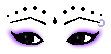 kat gave me this lovely lovely. cat eye liquid liner, shadowed with purple shadow, and liquid liner/jewels added above the eyebrows for design.