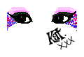 is kinda complicated(sp?) but like its leopard print. ehe i got it from the huge leopard print fad now and its heavy black eyeliner kinda half circles going everywhichway and hot pink eyeliner (or