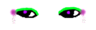 simple green glitter on top, and a lil purple dot in the corner of each eye and some type of symbol on the outer part of the eye i did the juno reactor sign.